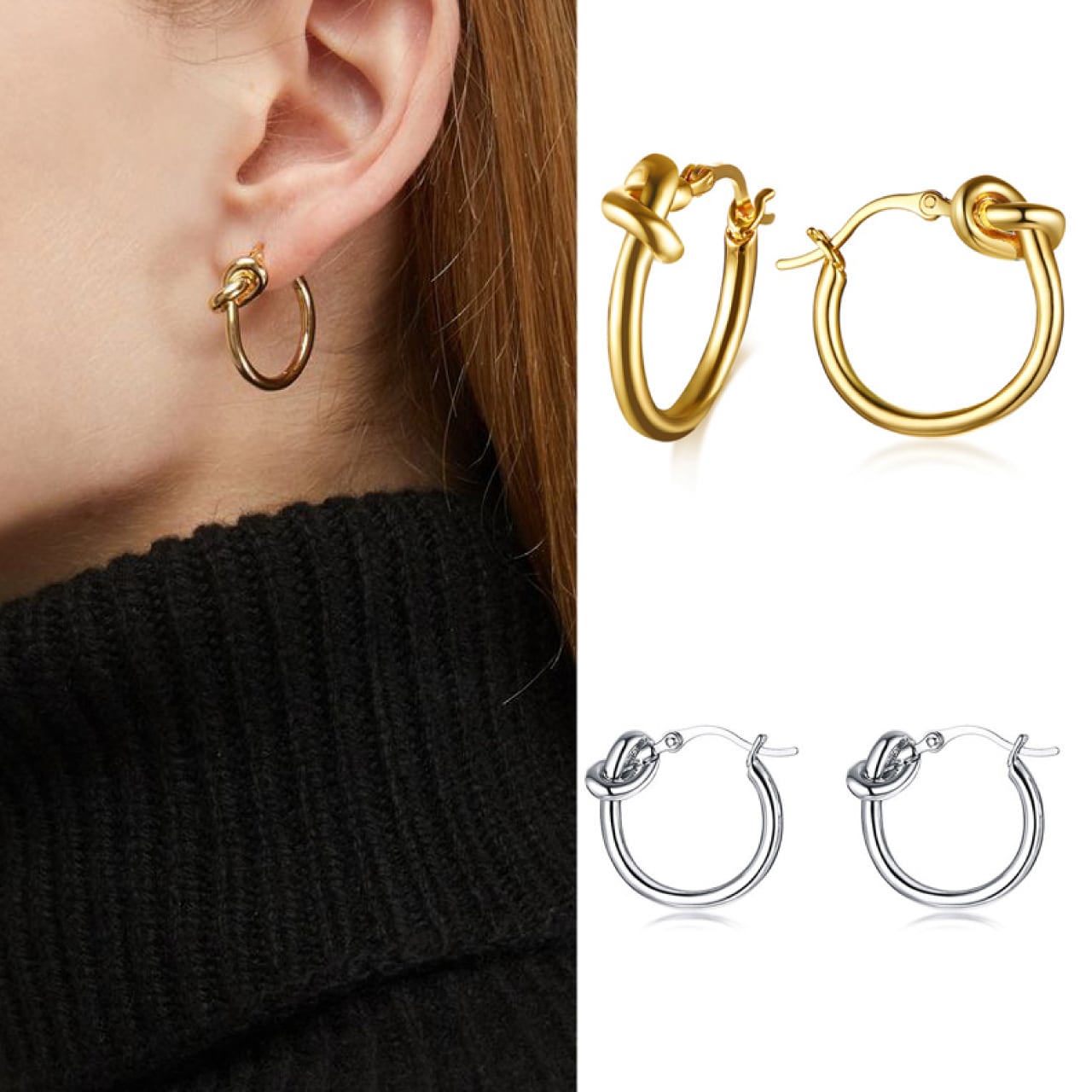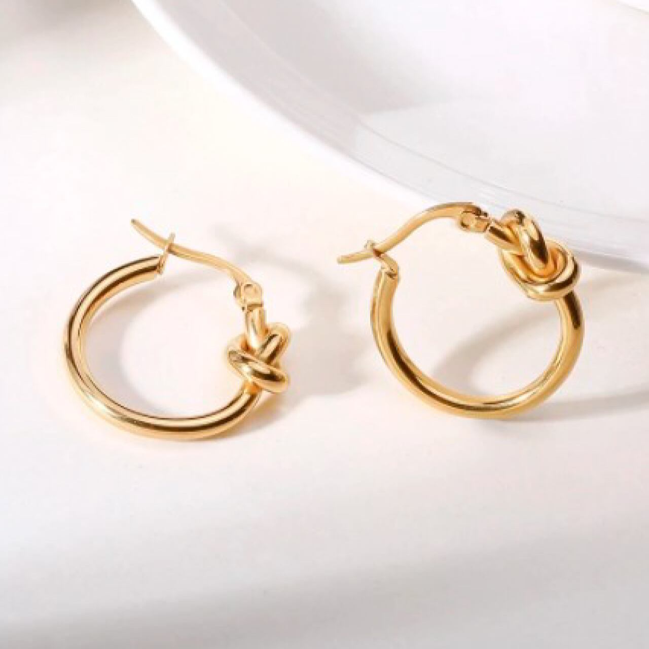 小さい結び目デザインのミニフープピアスです☆