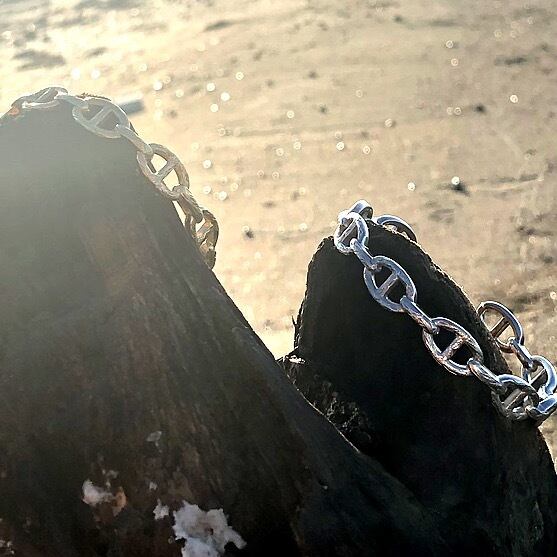 マリンチェーンとは別名アンカーチェーンと呼ばれることがあり、船の碇を繋ぐ鎖のデザインです。愛する人との絆や家族の絆をイメージして作りました。